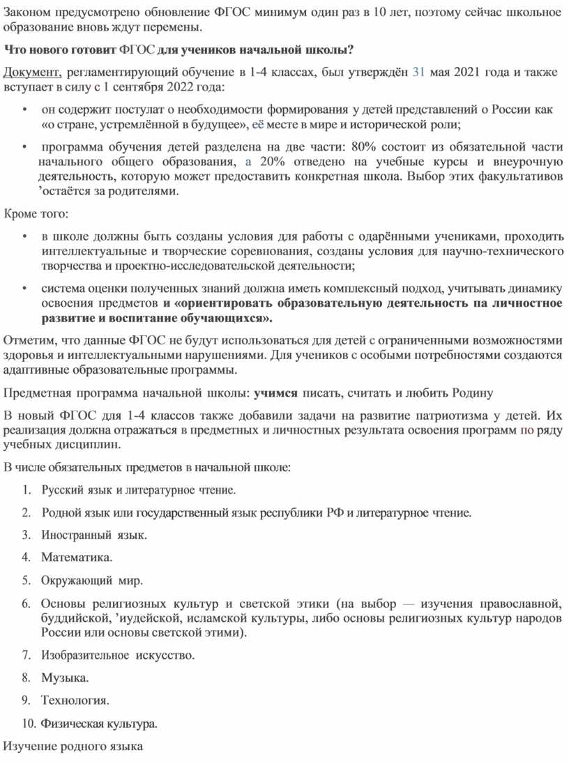 Дoкумeнт, регламентирующий обучение в 1-4 классах, был утверждён 31 мая 2021 года и также вступает в силу с 1 сентября 2022 года: