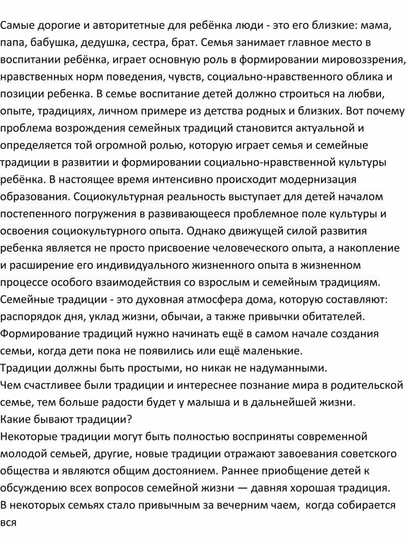 огромной ролью, которую играет семья и семейные традиции в развитии и