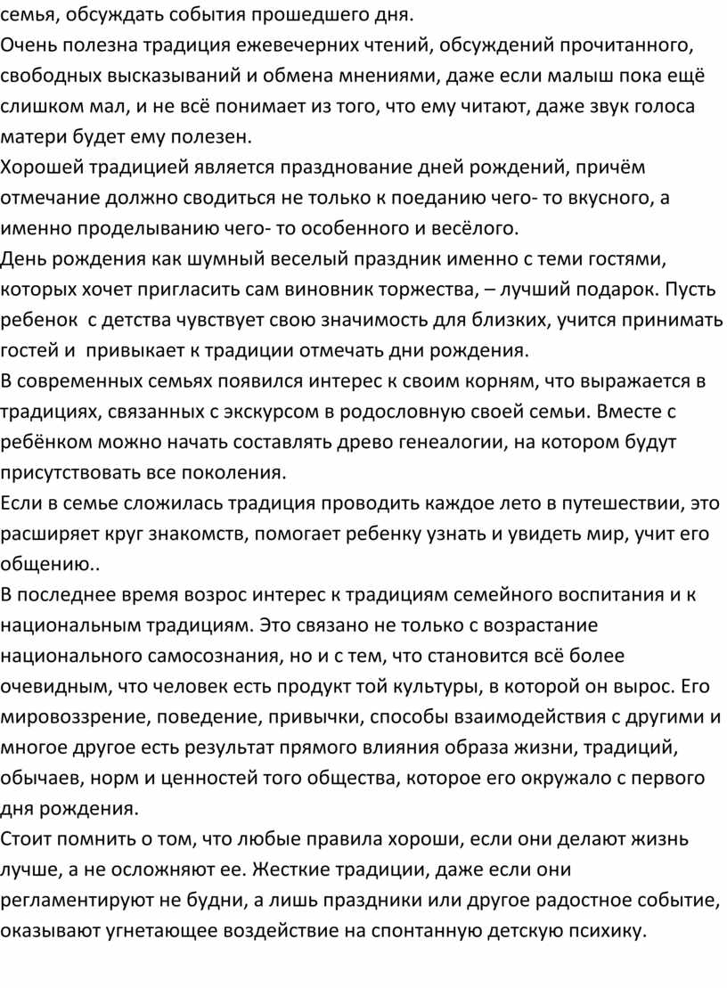 данными. Главное, чтобы семейные традиции способствовали упрочнению