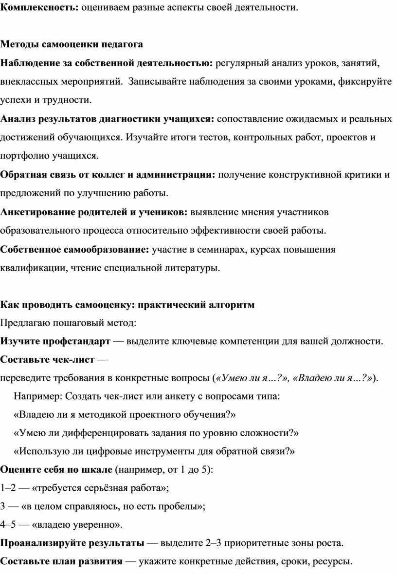 Методы самооценки педагога