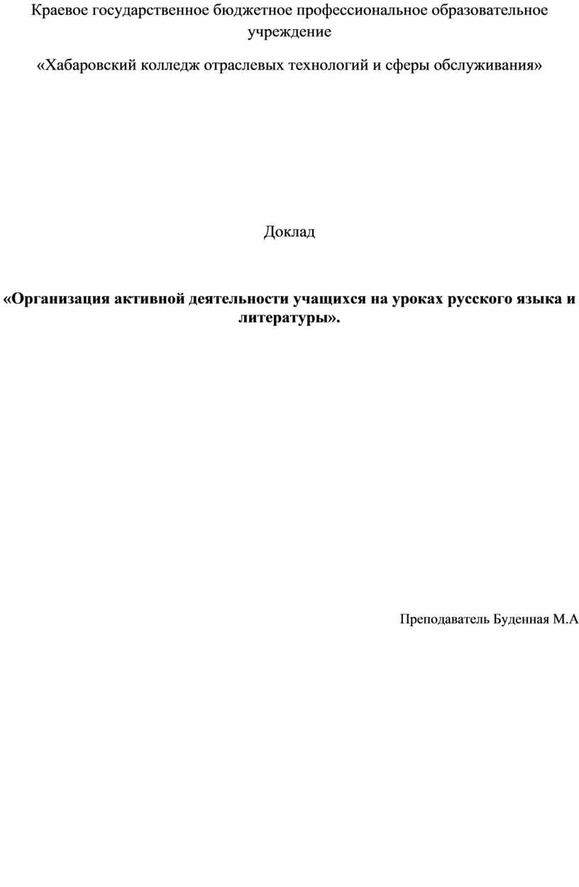 Преподаватель Буденная М.А