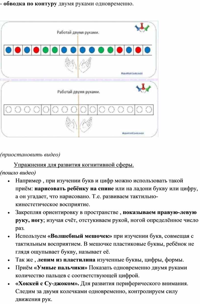 Но , в силу специфики развития и дефекта детей нашей категории, мы не можем полноценно осуществлять выполнение нейропсихологических упражнений, а берём лишь доступные элементы , посильные для детей с интеллектуальными нарушениями, максимально упрощаем эти упражнения. Так как принцип «не навреди» остаётся приоритетным.