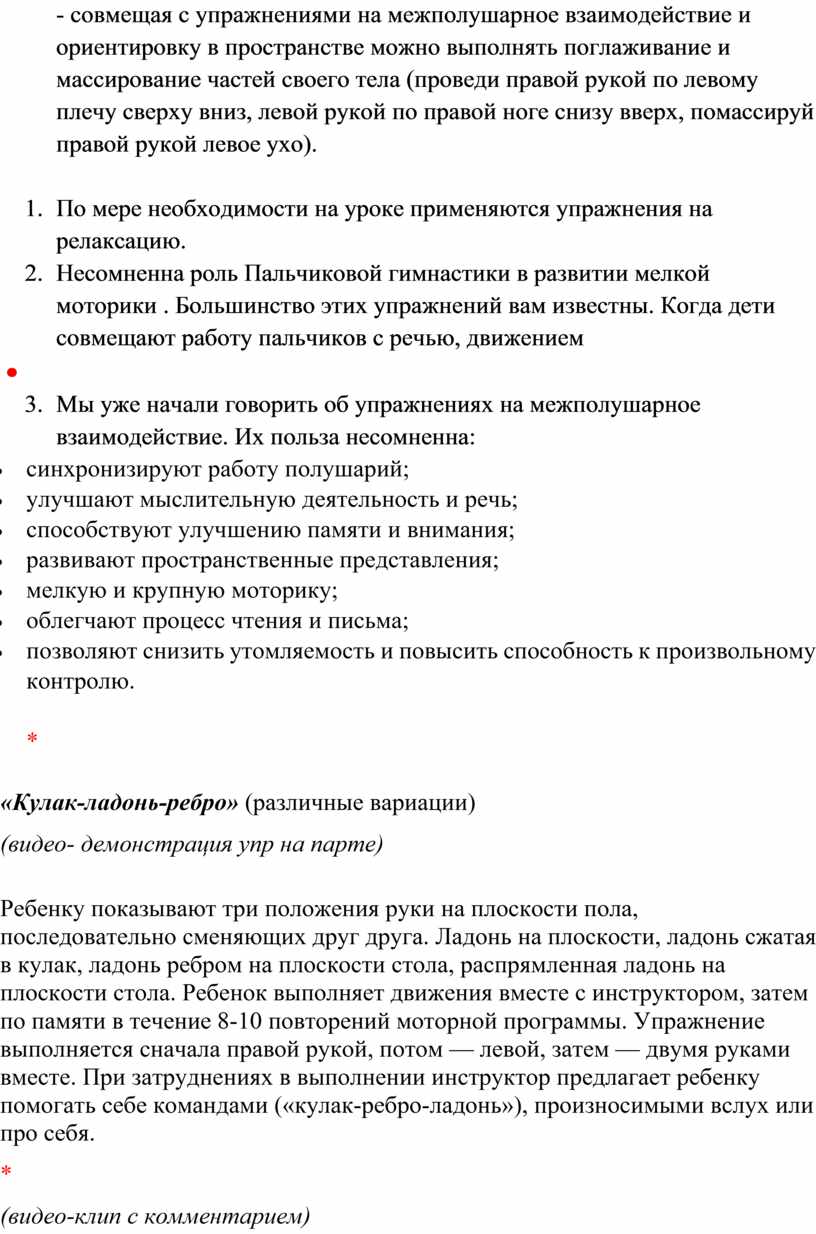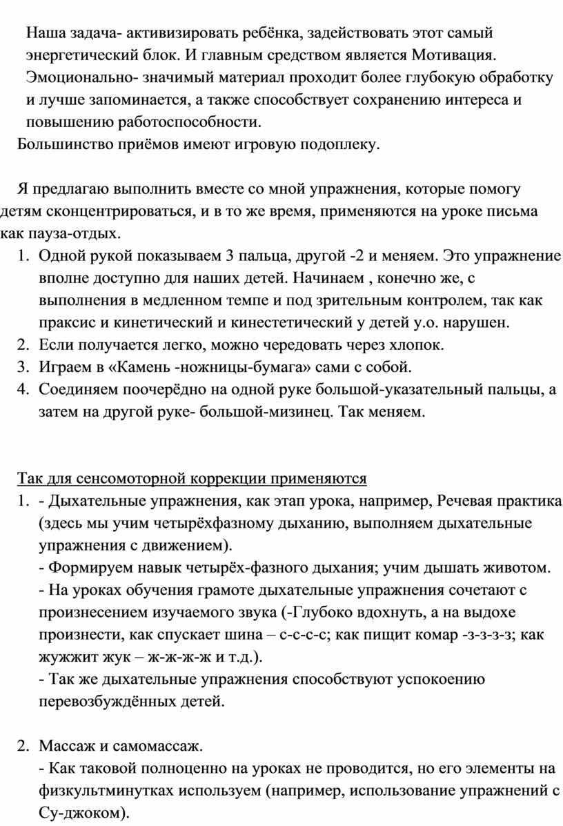 · И в своей работе я активно использую нейропсихологические упражнения и приёмы. Но так как урок- это не коррекционное занятие, а всё таки он несёт обучающую функцию, то нейропсихологические приёмы являются дополнением к этапам урока.
