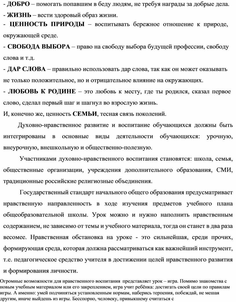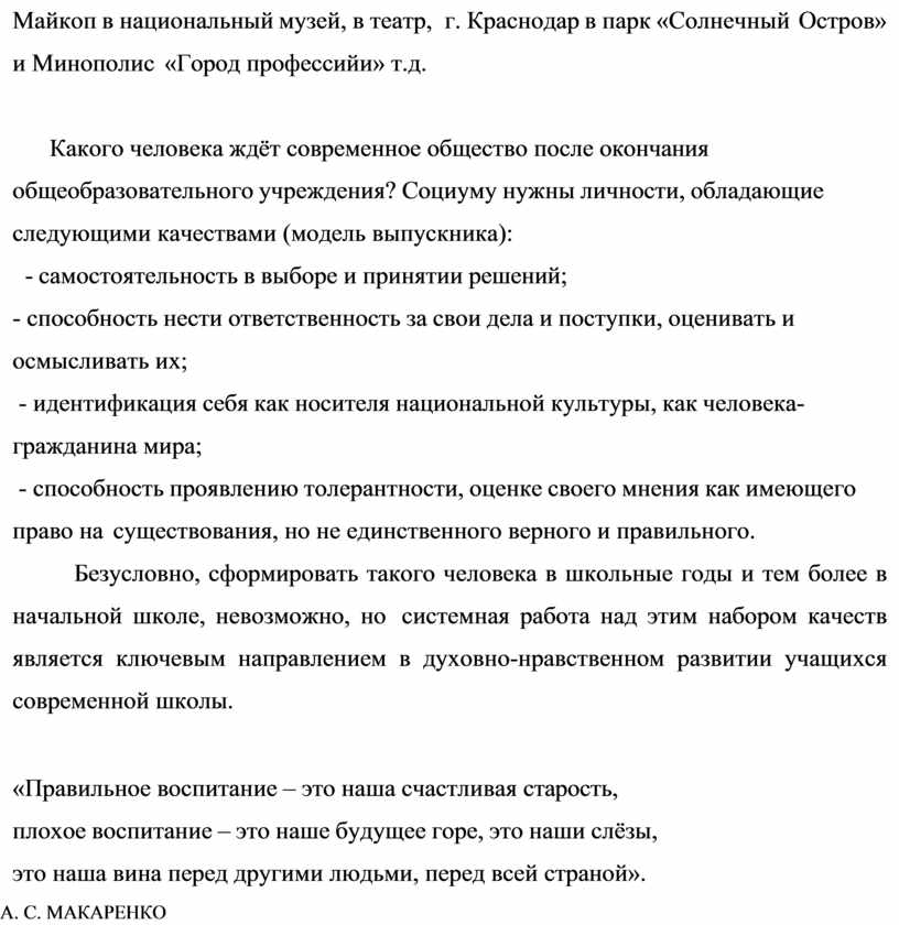Безусловно, сформировать такого человека в школьные годы и тем более в начальной школе, невозможно, но системная работа над этим набором качеств является ключевым направлением в духовно-нравственном развитии учащихся современной школы.