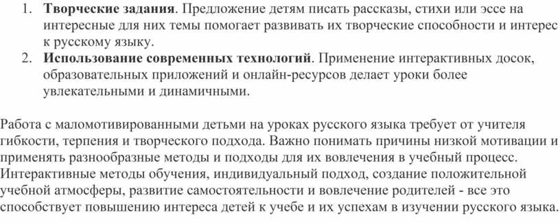 творческого подхода. Важно понимать причины низкой мотивации и применять