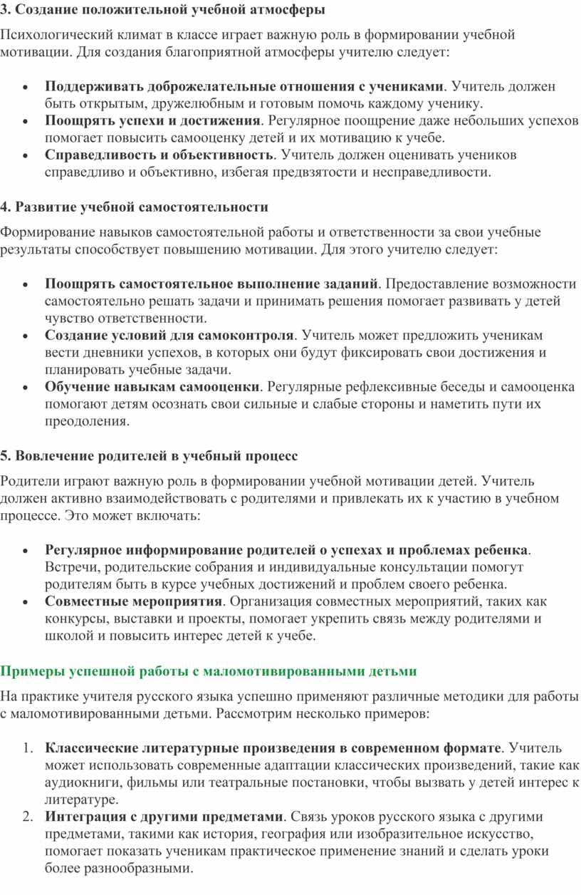 учебной атмосферы, развитие самостоятельности и вовлечение родителей - все это