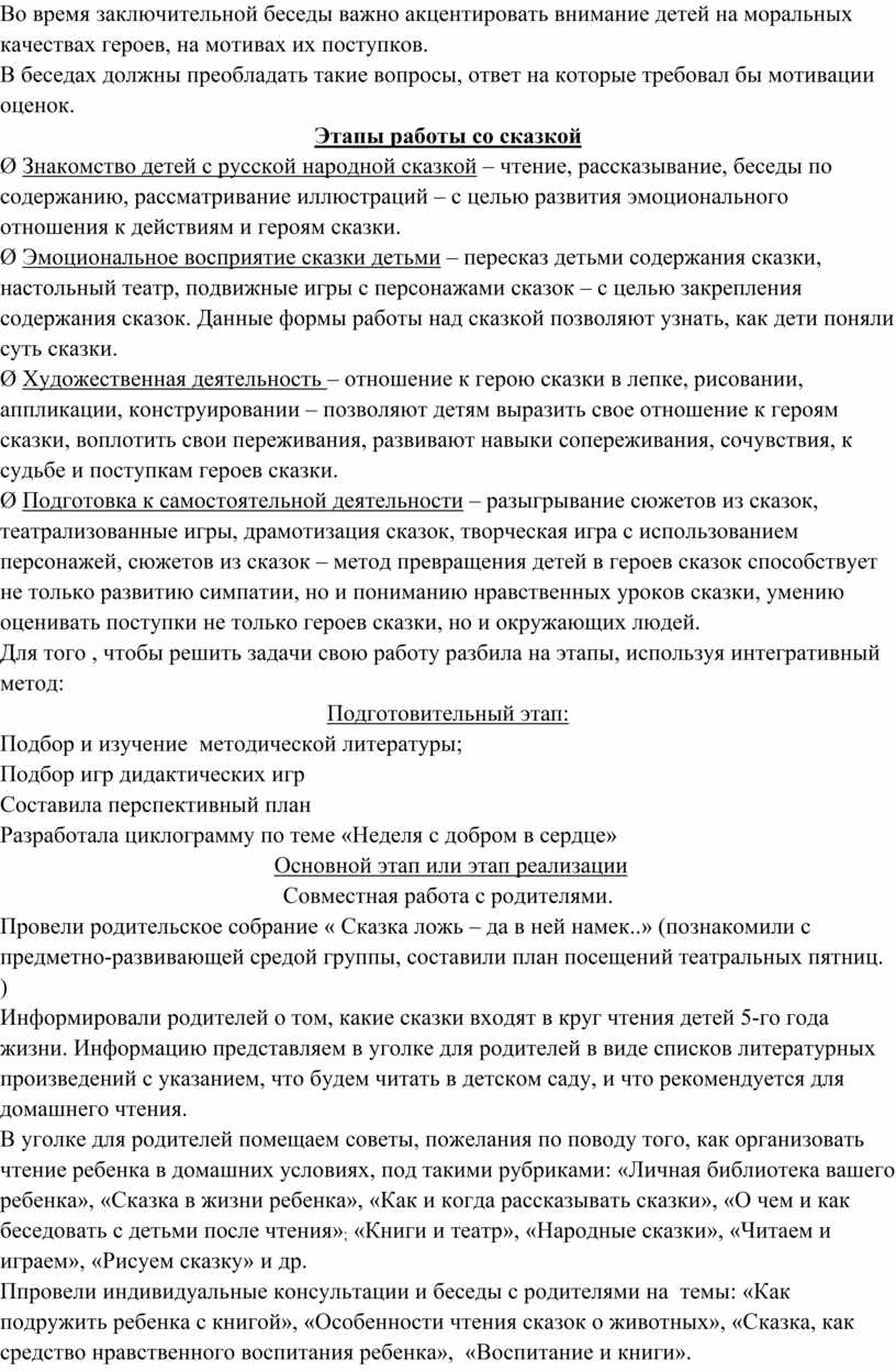 Таким образом, всю работу по развитию у дошкольников нравственных качеств средствами сказки провожу совместно с родителями