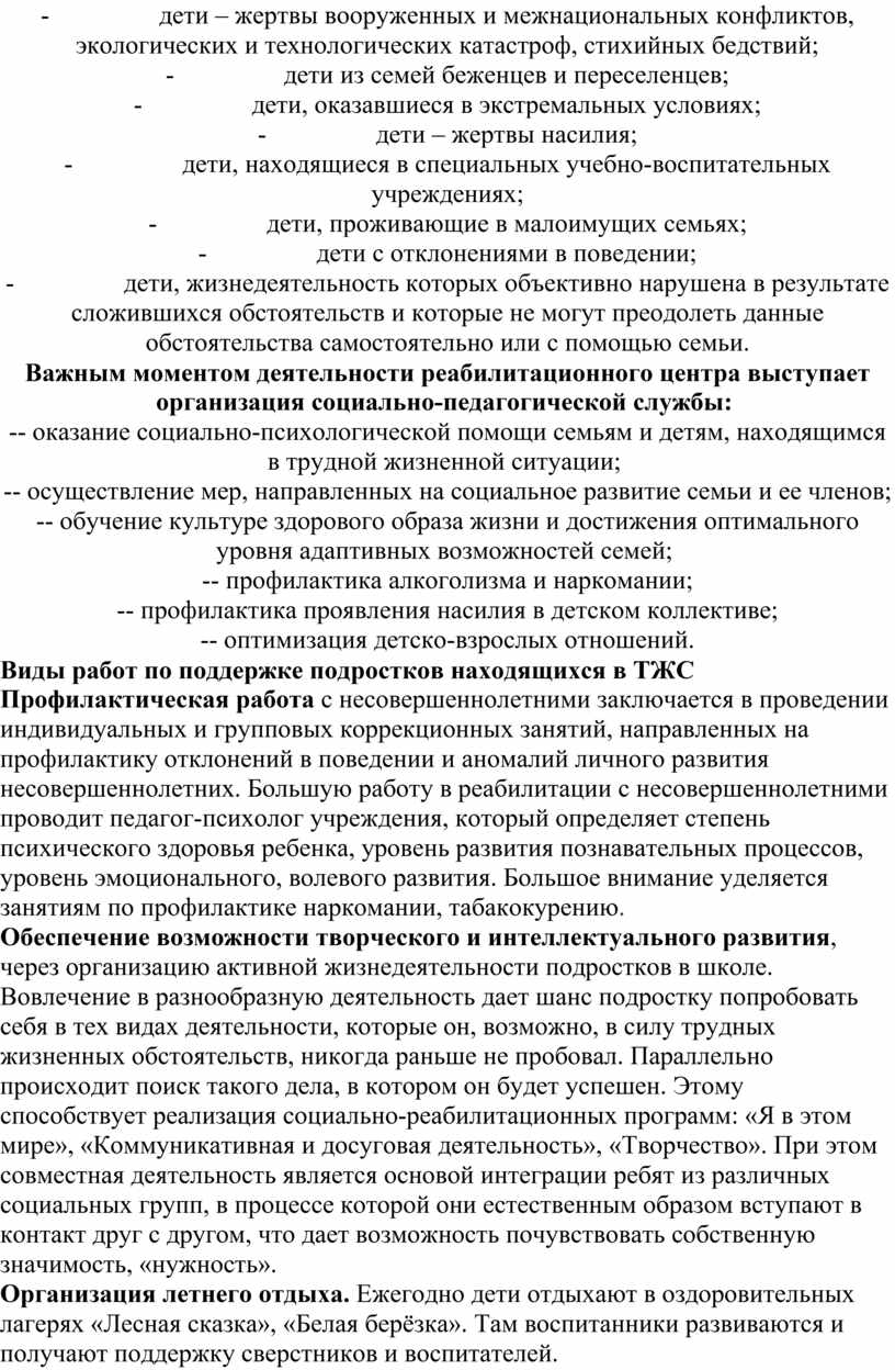 «Социальная реабилитация несовершеннолетних, находящихся в трудной жизненной ситуации»