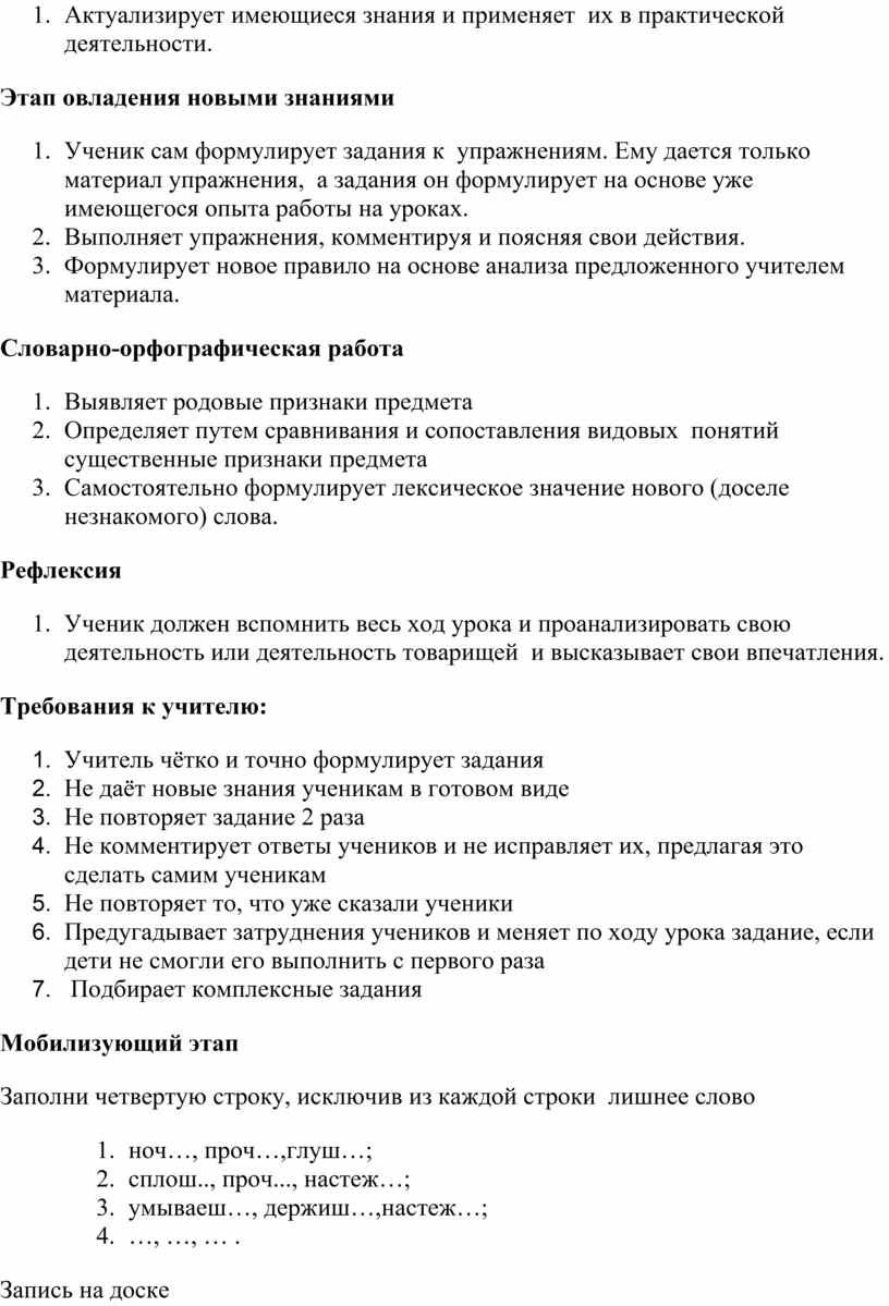 Отсюда и вытекают требования к современному уроку, который должен предполагать: