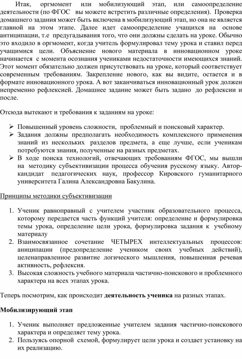 Ø В ходе поиска технологий, отвечающих требованиям ФГОС, мы вышли на методику субъективизации процесса обучения русскому языку. Автор- кандидат педагогических наук, профессор Кировского гуманитарного университета Галина Александровна Бакулина.