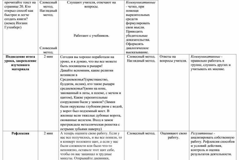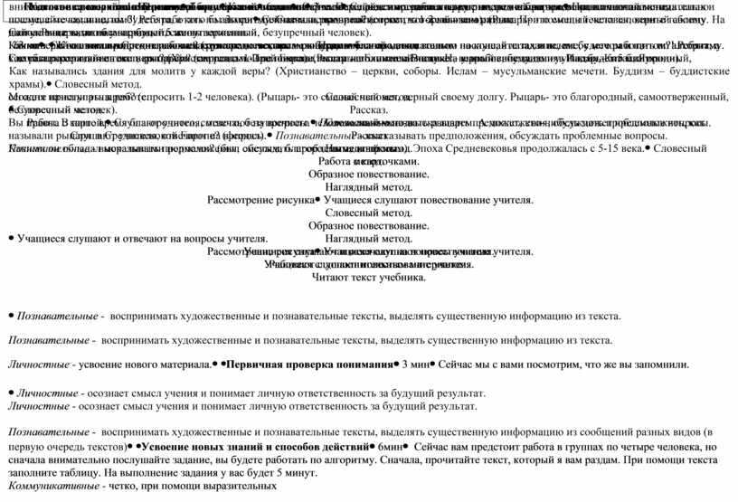 -предметные: формирование представления о Средневековье, религиях, рыцарях