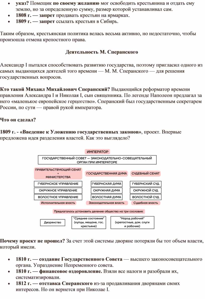 1809 г. - «Введение к Уложению государственных законов», проект. Впервые предложена идея разделения властей. Как это выглядело?