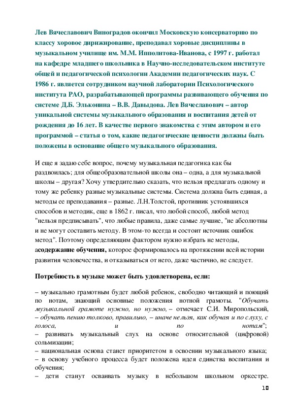 чисто музыкальным, педагогическим и психологическим интересам. Их