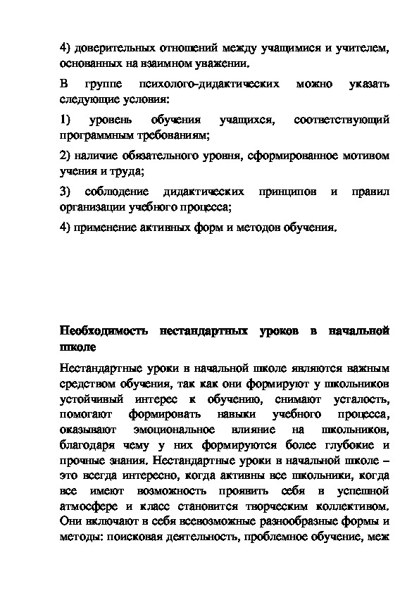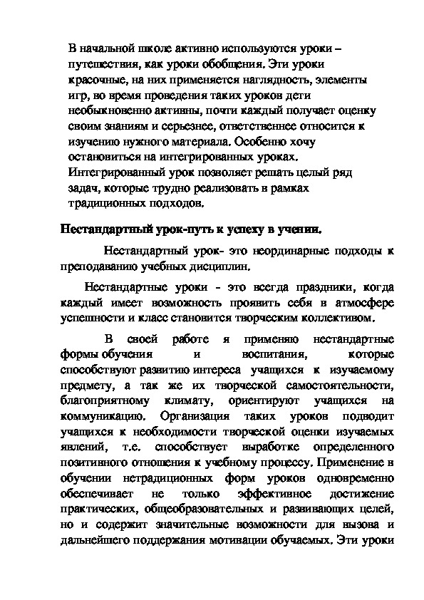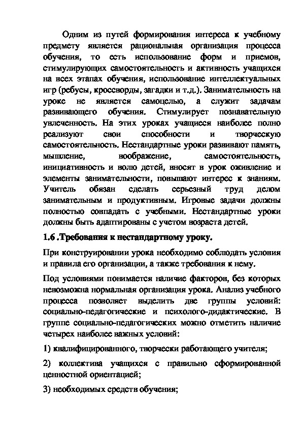 «Нестандартный урок как средство формирования