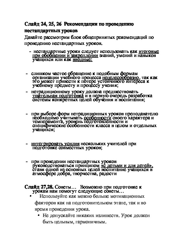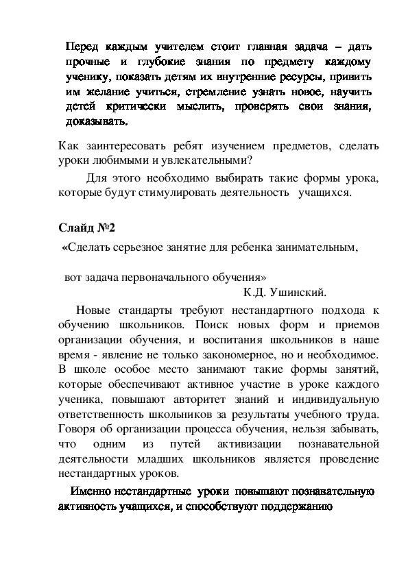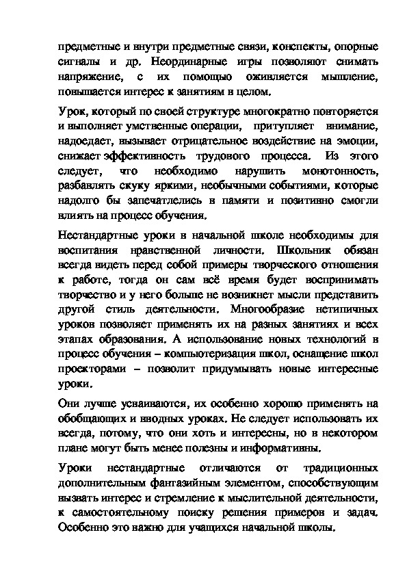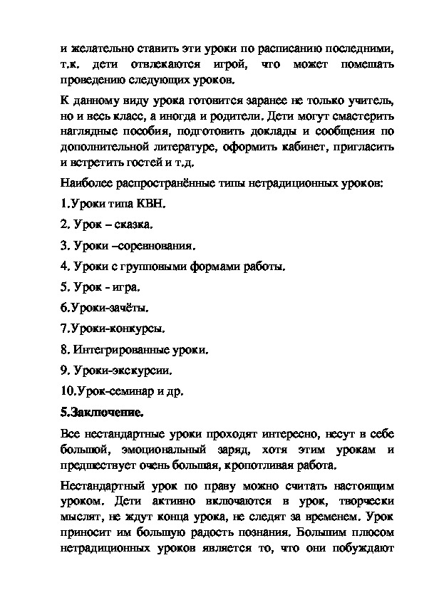 нестандартных уроков.