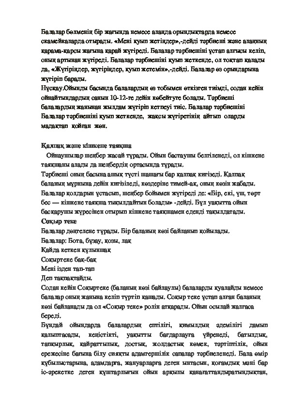 Нұсқау.Ойынды басында балалардың өз тобымен өткізген тиімді, содан кейін