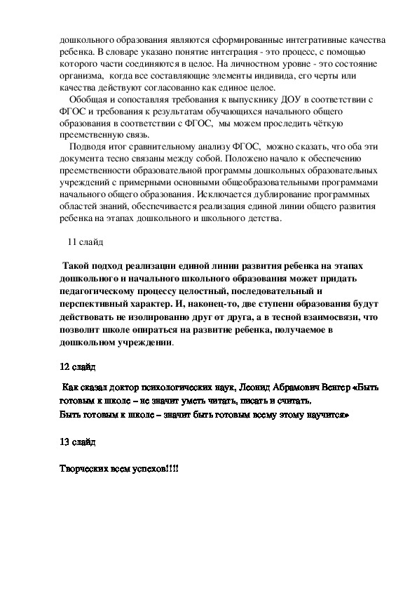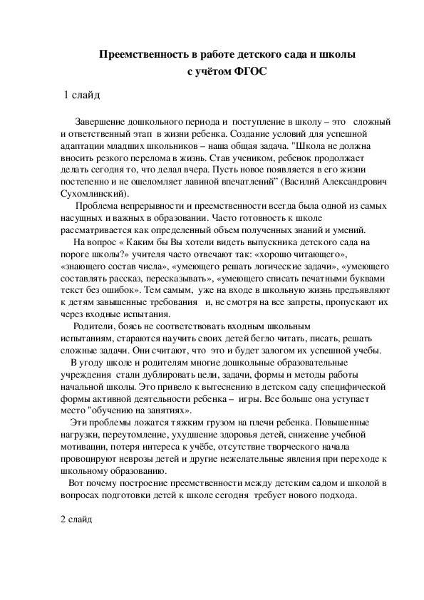 Проблема непрерывности и преемственности всегда была одной из самых насущных и важных в образовании. Часто готовность к школе рассматривается как определенный объем полученных знаний и умений.