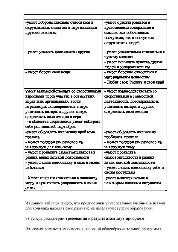 Обобщая и сопоставляя требования к выпускнику ДОУ в соответствии с