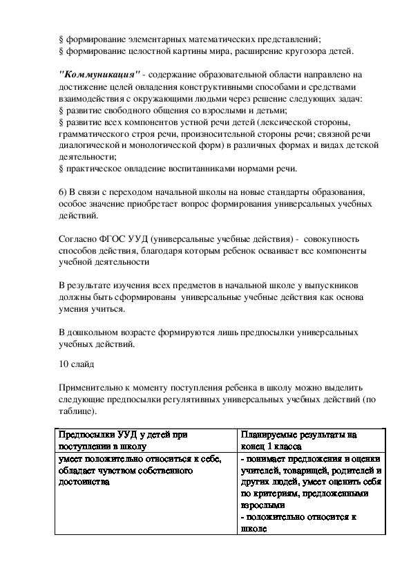 Из данной таблицы видно, что предпосылки универсальных учебных действий