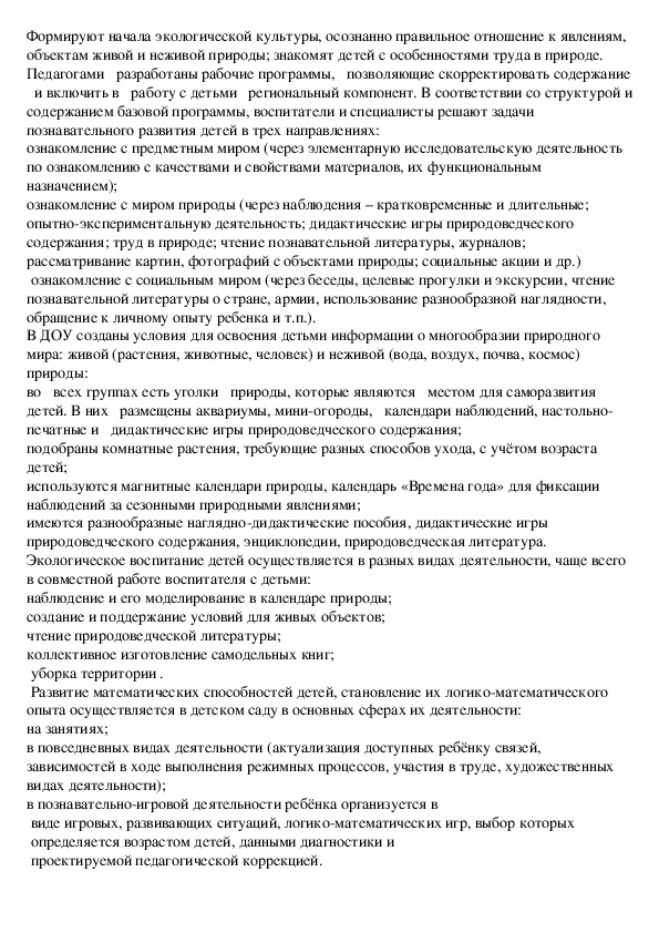 содержания; труд в природе; чтение познавательной литературы, журналов;