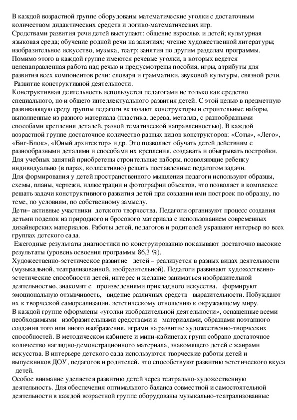 способностей. В методическом кабинете и миникабинетах групп собрано достаточное