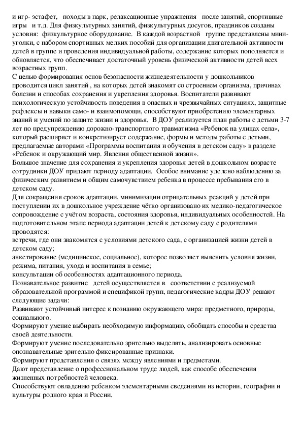 здоровья детей. Работа проводится систематически. Занятия по физической культуре
