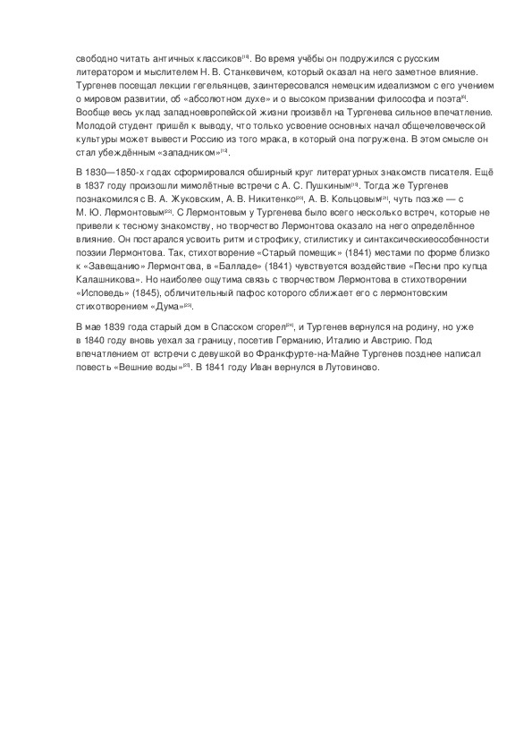 в 1837 году произошли мимолётные встречи с А. С. Пушкиным[19]. Тогда же Тургенев
