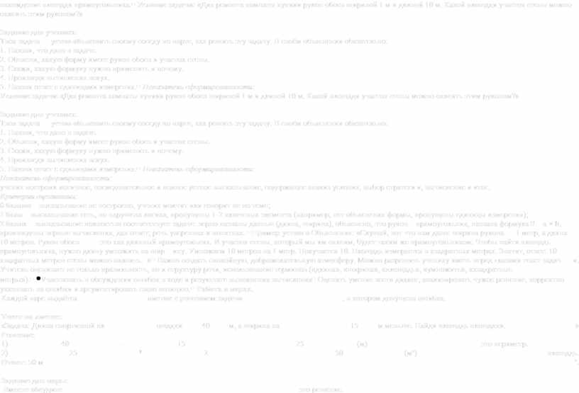 Важно создать спокойную, доброжелательную атмосферу. Можно разрешить ученику иметь перед глазами текст задачи. Учитель оценивает не только правильность, но и структуру речи, использование терминов («длина», «ширина», «площадь», «умножить», «квадратные метры»). |
