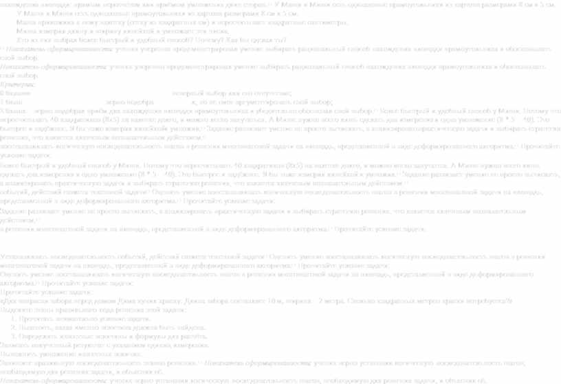 Показатель сформированности: ученик уверенно продемонстрировал умение выбирать рациональный способ нахождения площади прямоугольника и обосновывать свой выбор. Критерии: 0