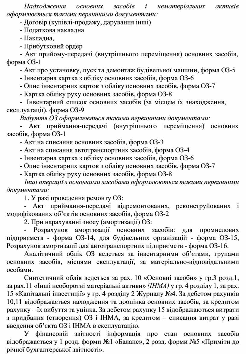 Аналітичний облік ОЗ ведеться за інвентарними об’єтами, групами основних засобів, місцями експлуатації, за матеріально-відповідальними особами.
