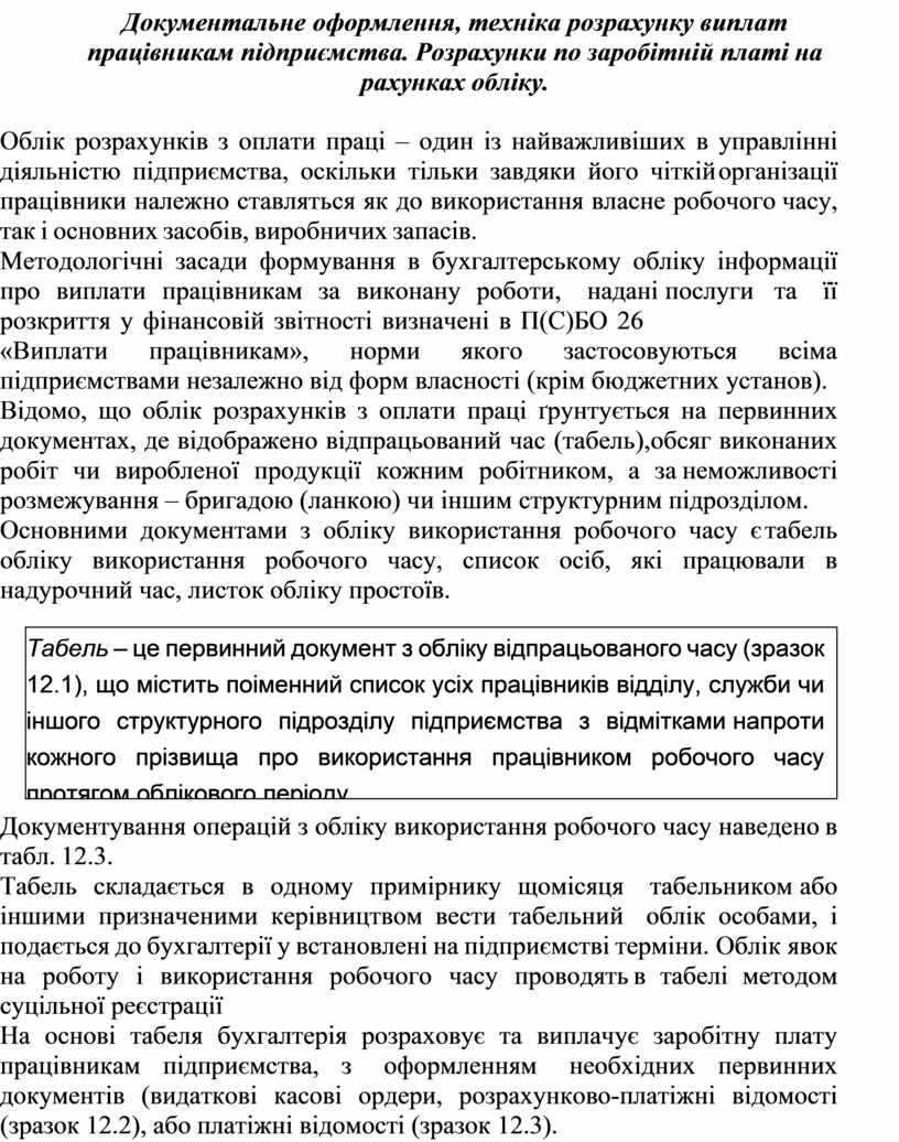 Документування операцій з обліку використання робочого часу наведено в табл. 12.3.