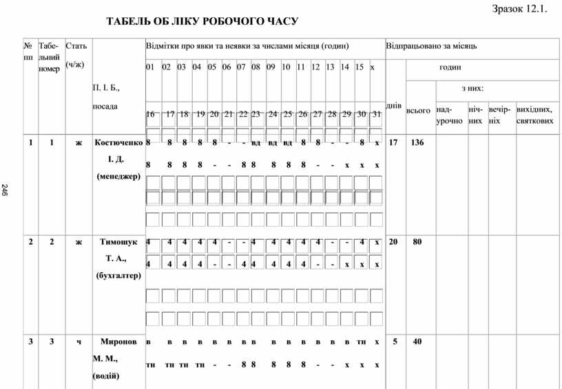 ТАБЕЛЬ ОБ ЛІКУ РОБОЧОГО ЧАСУ