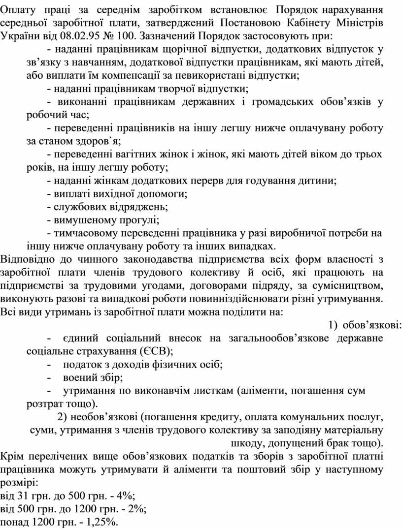Відповідно до чинного законодавства підприємства всіх форм власності з заробітної плати членів трудового колективу й осіб, які працюють на підприємстві за трудовими угодами, договорами підряду, за сумісництвом, виконують разові та випадкові роботи повинні здійснювати різні утримування.