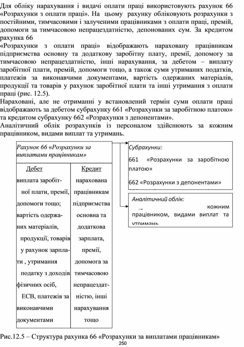 Рис.12.5 – Структура рахунка 66 «Розрахунки за виплатами працівникам»