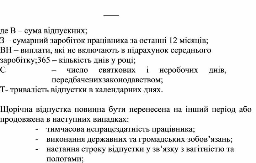 ВН – виплати, які не включають в підрахунок середнього заробітку; 365 – кількість днів у році;