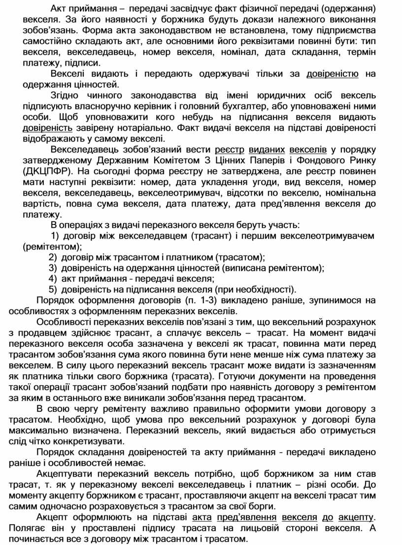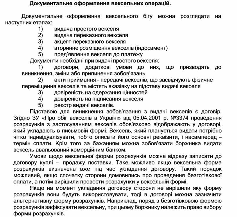 Документальне оформлення вексельних операцій.