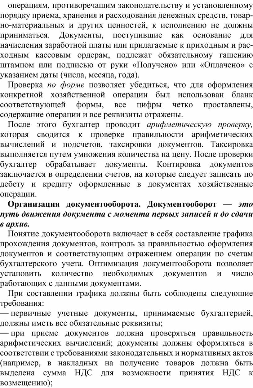 Приемка, проверка и бухгалтерская обработка документов. Поступившие в бухгалтерию документы подвергаются обработке для подготовки их к записям в регистры бухгалтерского учета. Основным этапом бухгалтерской обработки документов в организации является проверка поступивших документов по существу, по форме, арифметически.