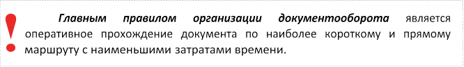 Основными характеристиками документооборота являются маршрут движения, который включает все инстанции на пути движения документа от создания черновика (или получения) до подшивки в дело, и время, затрачи- ваемое на прохождение документов по этому маршруту.