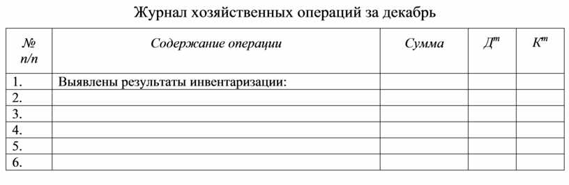 Журнал хозяйственных операций за декабрь