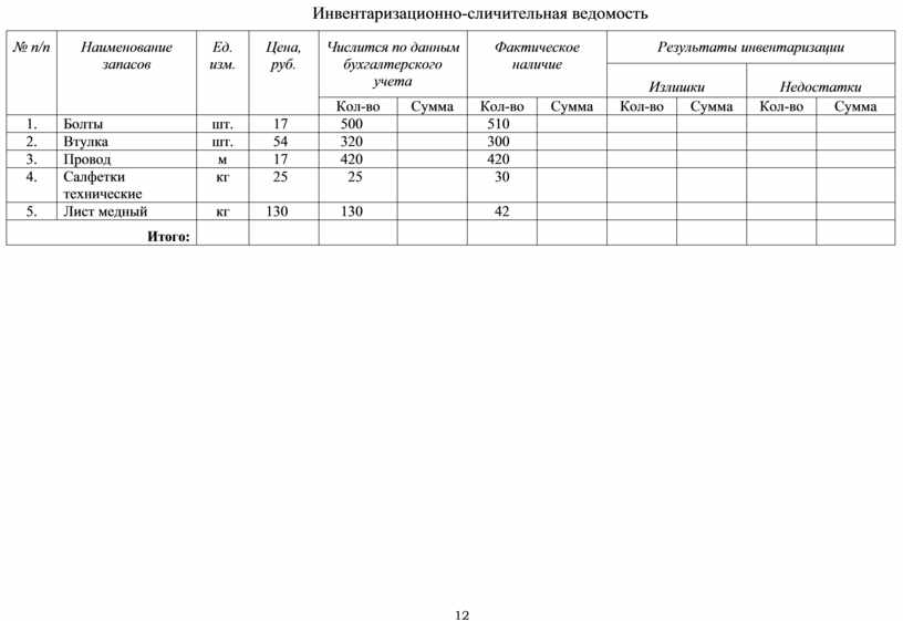 Инвентаризационно-сличительная ведомость