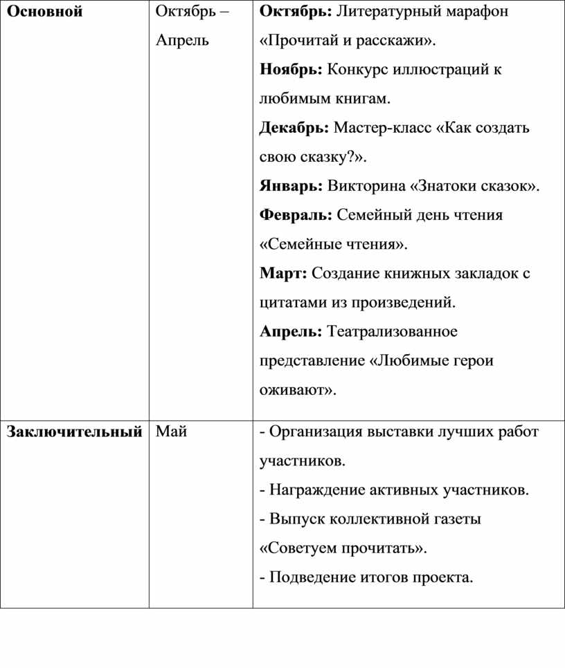 Этапы реализации проекта «Книжкина неделя»