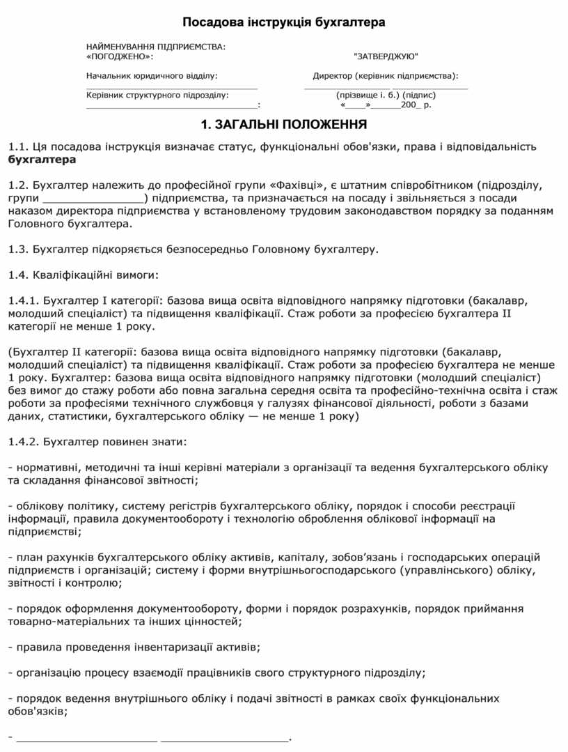 1.2. Бухгалтер належить до професійної групи «Фахівці», є штатним
