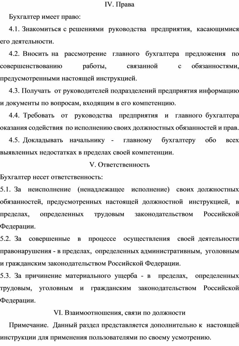 VI. Взаимоотношения, связи по должности
