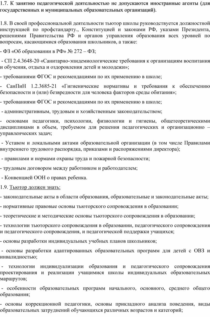 1.7. К занятию педагогической деятельностью не допускаются иностранные агенты (для государственных и муниципальных образовательных организаций).
