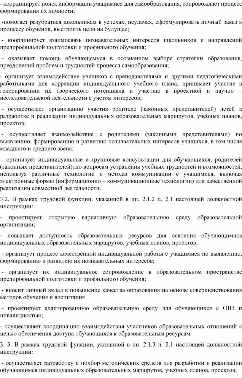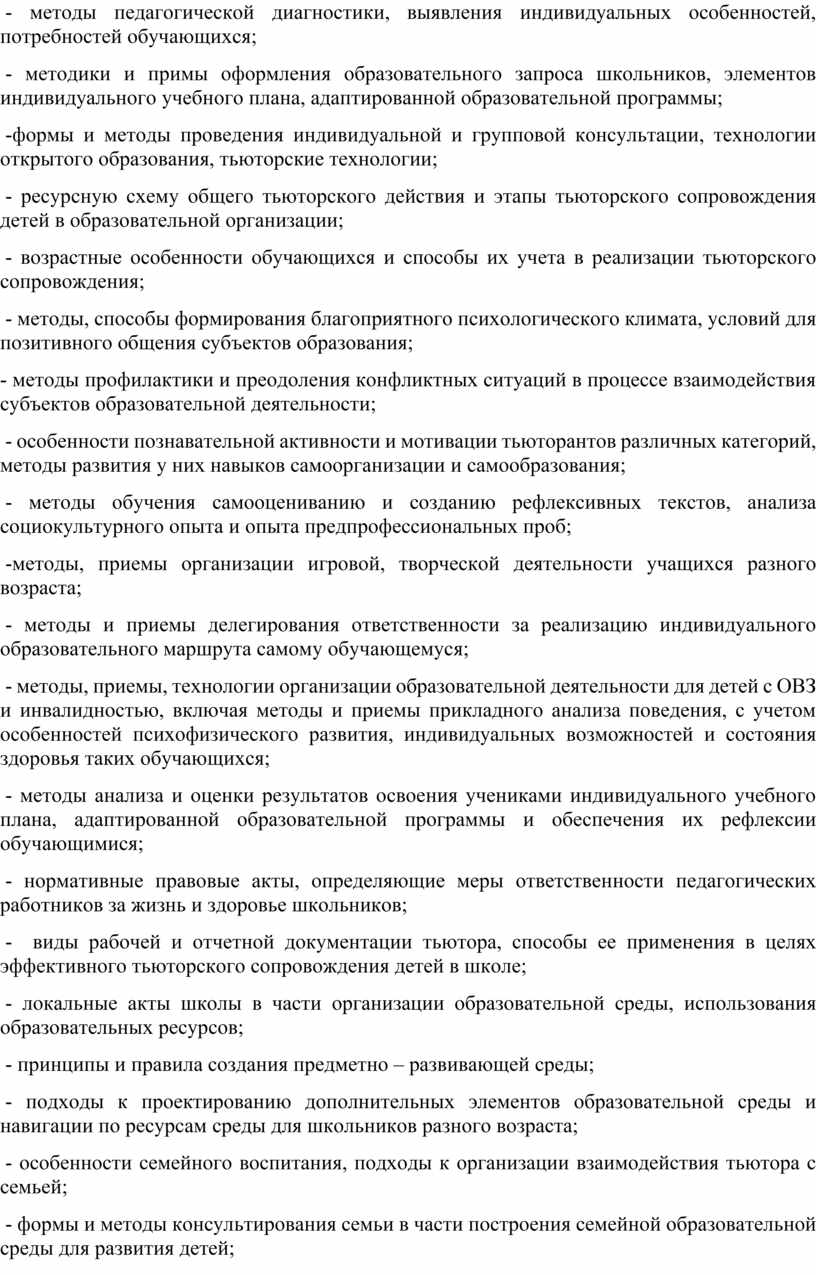 1.8. В своей профессиональной деятельности тьютор школы руководствуется должностной инструкцией по профстандарту., Конституцией и законами РФ, указами Президента, решениями Правительства РФ и органов управления образования всех уровней по вопросам, касающимися образования школьников, а также: