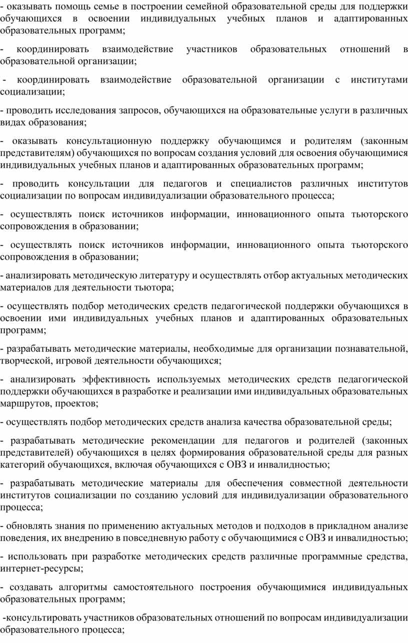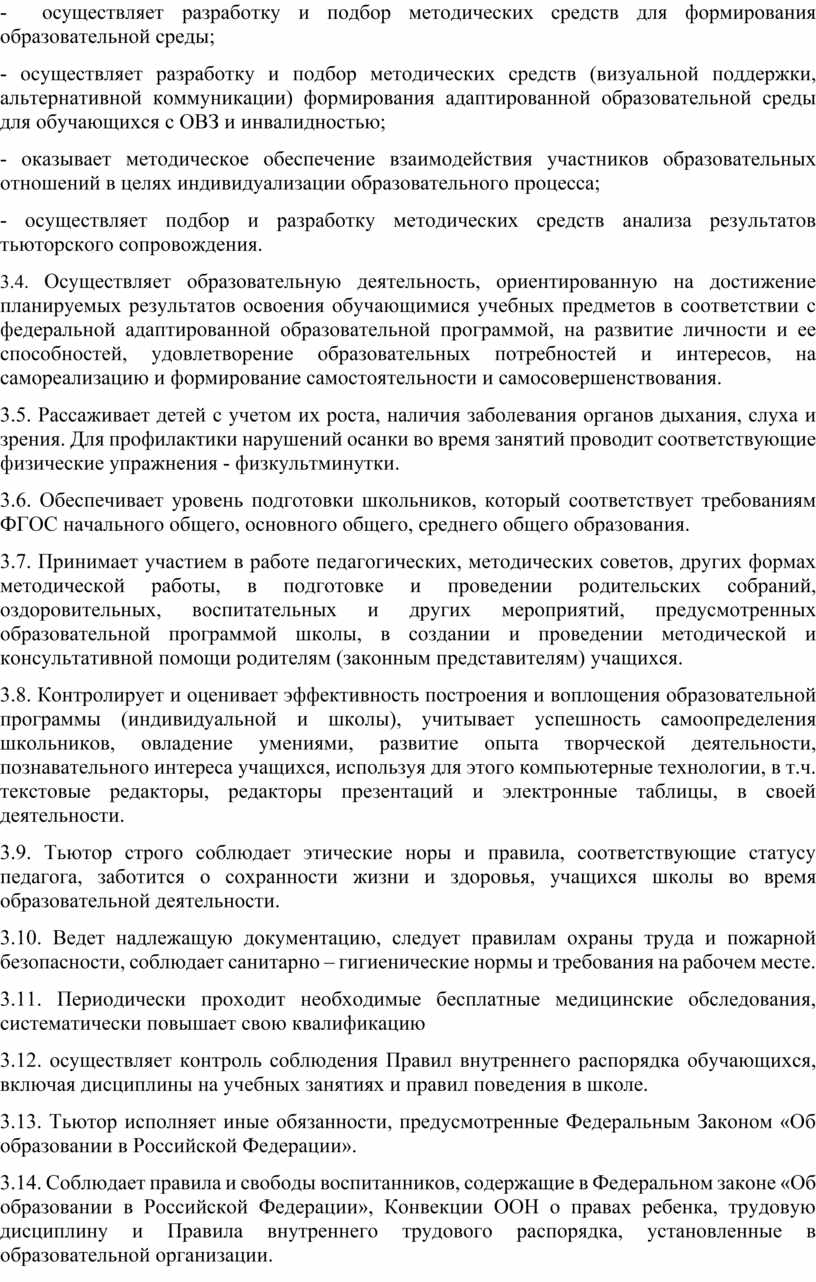 3.13. Тьютор исполняет иные обязанности, предусмотренные Федеральным Законом «Об образовании в Российской Федерации».