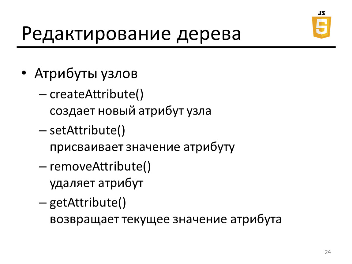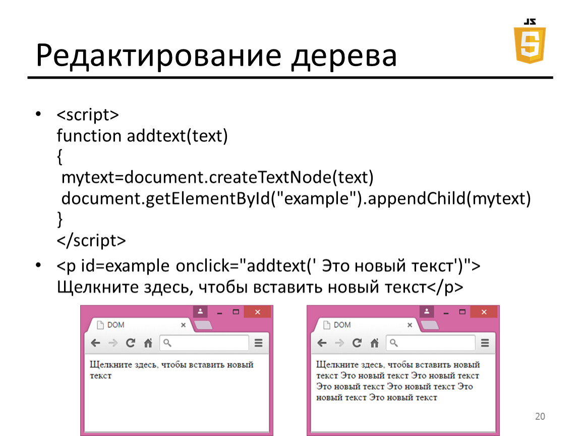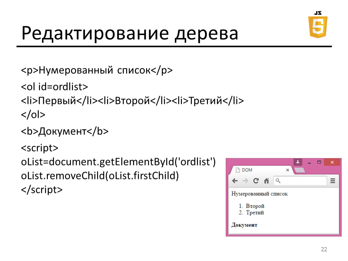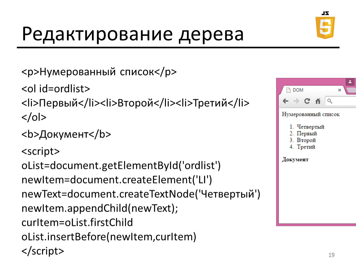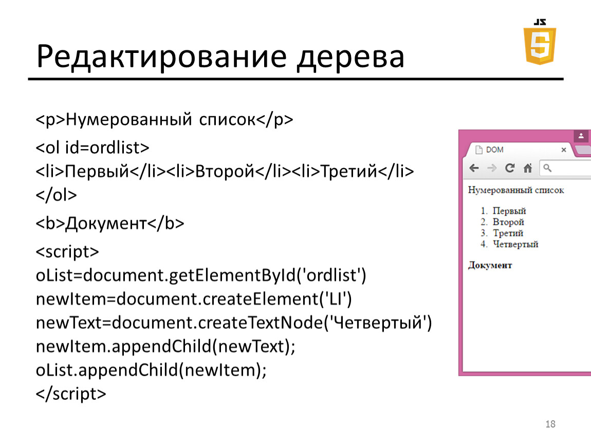 Позволяет создавать, удалять и изменять элементы документа и их содержимое
