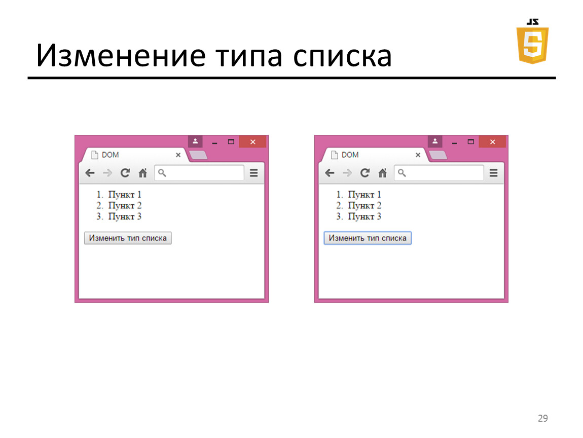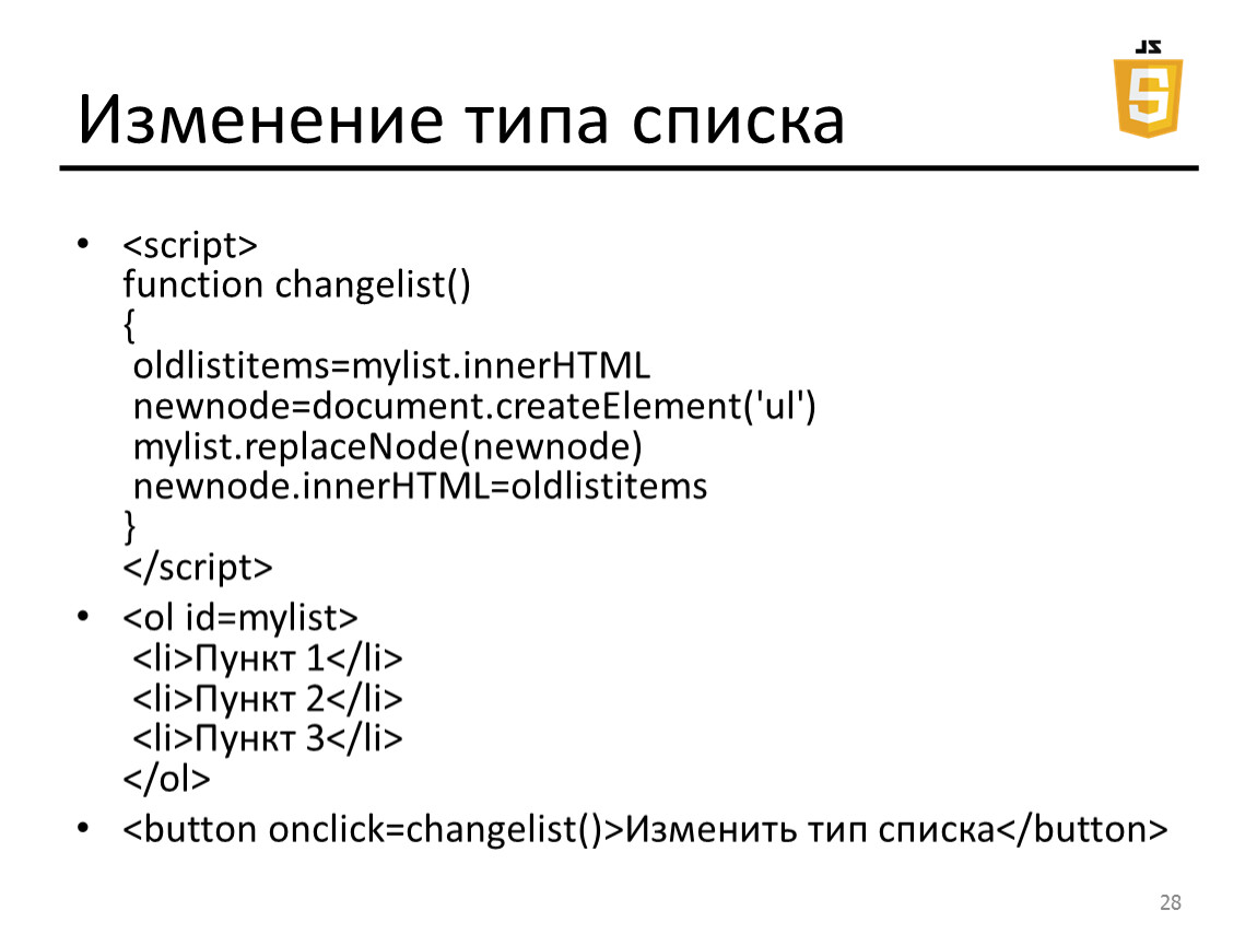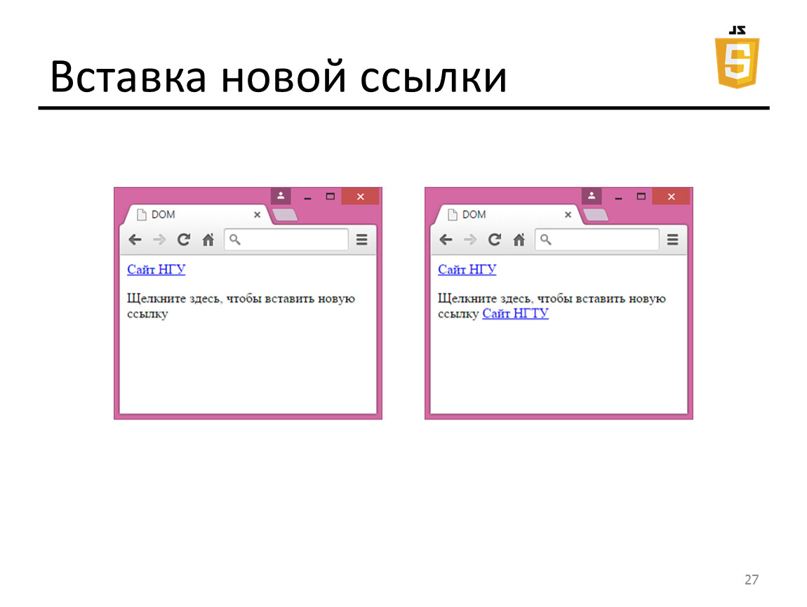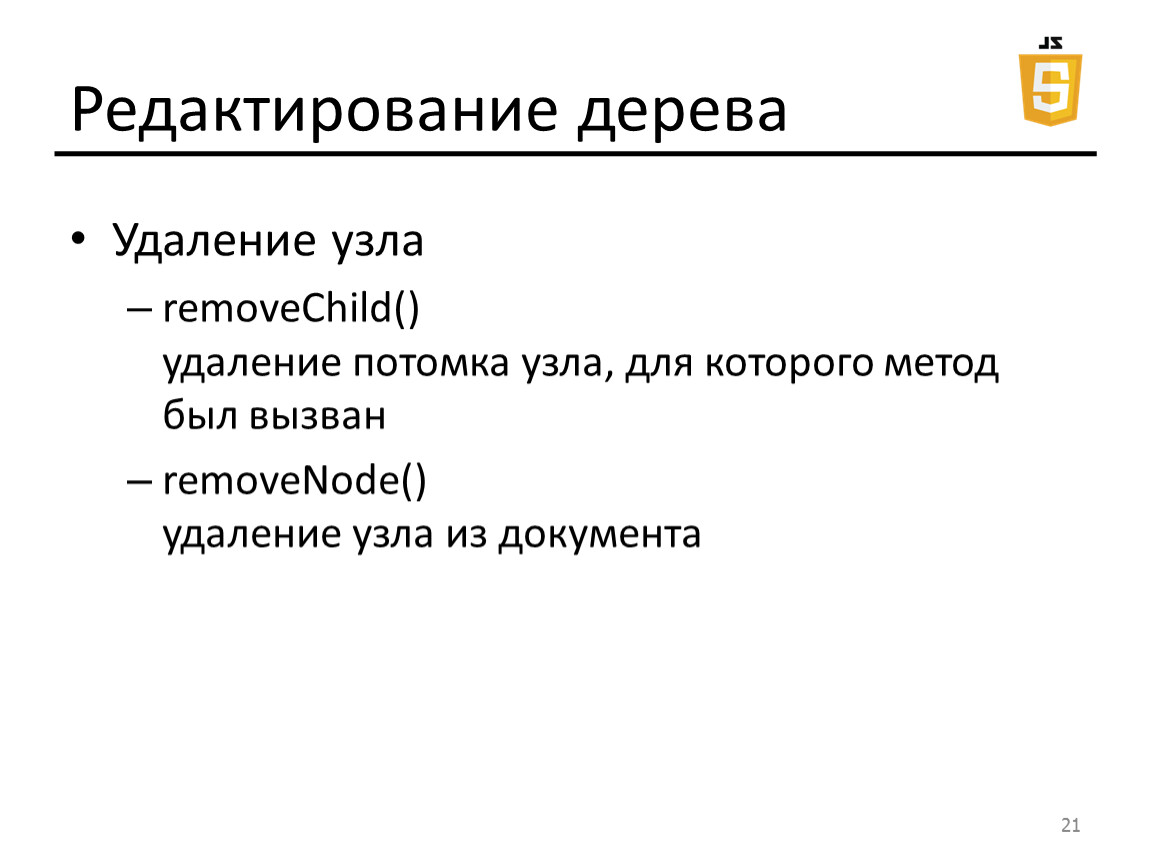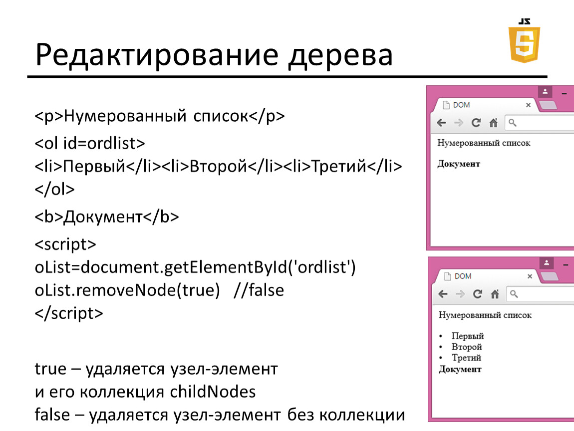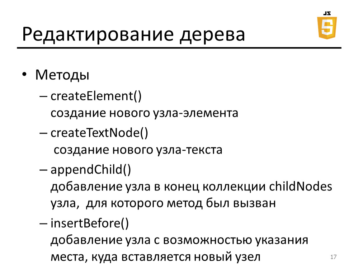insertBefore()добавление узла с возможностью указания места, куда вставляется новый узел