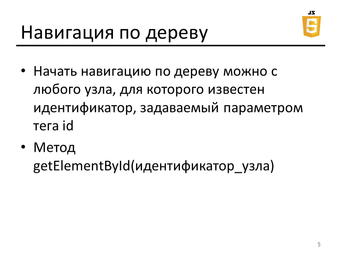 Начать навигацию по дереву можно с любого узла, для которого известен идентификатор, задаваемый параметром тега id
