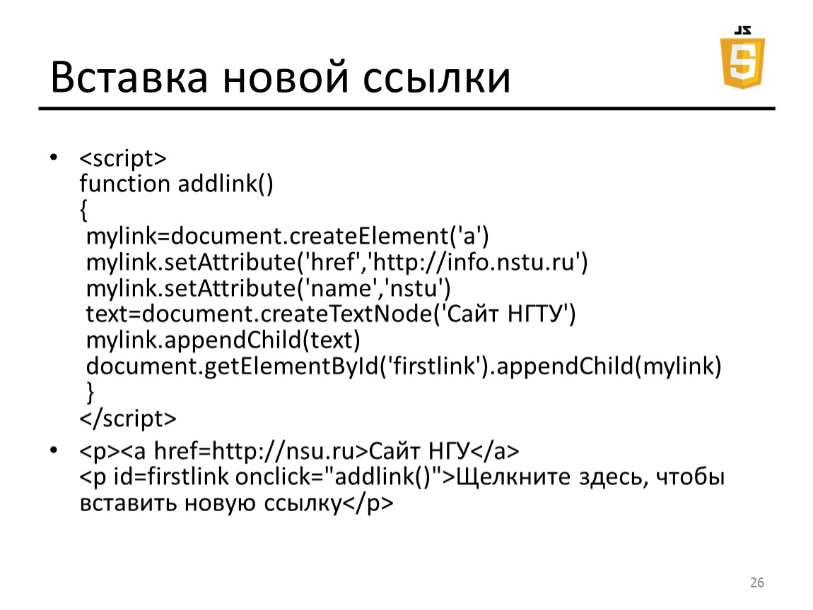 appendChild()добавление узла в конец коллекции childNodes узла, для которого метод был вызван